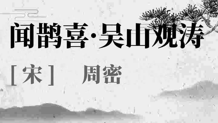 周密 (1232-1298),字公谨,号草窗,又号四水潜夫、弁阳老人、华不注山人,南宋词人、文学家。祖籍济南,流寓吴兴(今浙江湖州)。宋德右间为义乌县(今年内属浙江)令。入元隐居不仕。自号四水潜夫。他的诗文都有成就,又能诗画音律,尤好藏弃校书,一生著述较丰。著有《齐东野语》、《武林旧事》、《癸辛杂识》、《志雅堂要杂钞》等杂著数十种。其词远祖清真,近法姜夔,风格清雅秀润,与吴文英并称“二窗”,词集名《频洲渔笛谱》、《草窗词》。