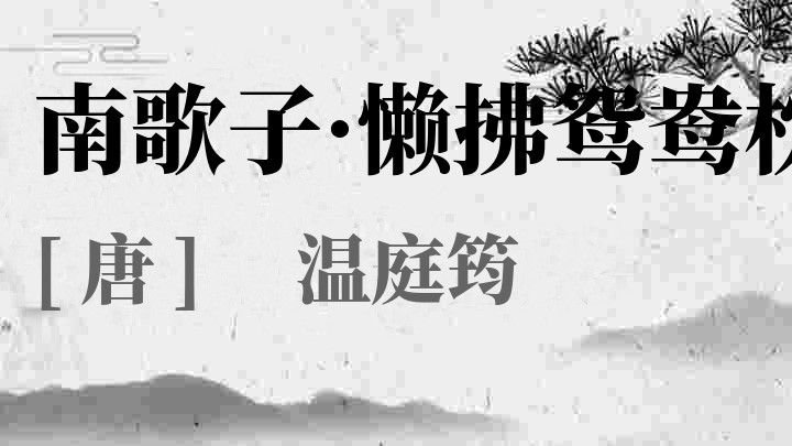 温庭筠(约812或说801、824)年—约866或说870、882年)唐代诗人、词人。本名岐,字飞卿,太原祁(今山西祁县东南)人。富有天才,文思敏捷,每入试,押官韵,八叉手而成八韵,所以也有“温八叉”之称。然恃才不羁,又好讥刺权贵,多犯忌讳,取憎于时,故屡举进士不第,长被贬抑,终生不得志。官终国子助教。精通音律。工诗,与李商隐齐名,时称“温李”。其诗辞藻华丽,秾艳精致,内容多写闺情。其词艺术成就在晚唐诸词人之上,为“花间派”首要词人,对词的发展影响较大。在词史上,与韦庄齐名,并称“温韦”。存词七十余首。后人辑有《温飞卿集》及《金奁集》。
