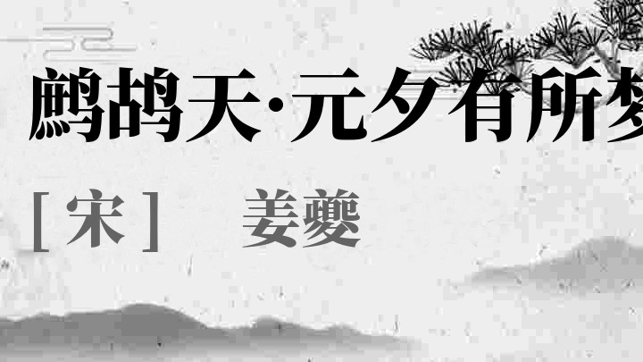 姜夔[kuí](1154年—1221年),字尧章,号白石道人,汉族,饶州德兴人。南宋文学家、音乐家。其作品素以空灵含蓄著称,姜夔对诗词、散文、书法、音乐,无不精善,是继苏轼之后又一难得的艺术全才。有《白石道人诗集》《白石道人歌曲》《续书谱》《绛帖平》等书传世。