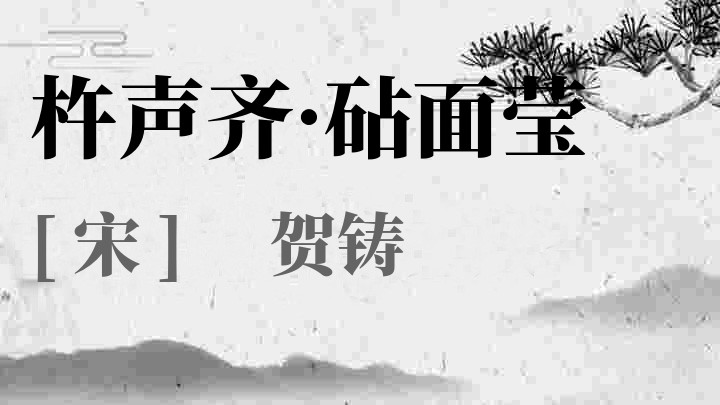 贺铸(1052~1125) 北宋词人。字方回,号庆湖遗老。汉族,卫州(今河南卫辉)人。宋太祖贺皇后族孙,所娶亦宗室之女。自称远祖本居山阴,是唐贺知章后裔,以知章居庆湖(即镜湖),故自号庆湖遗老。
