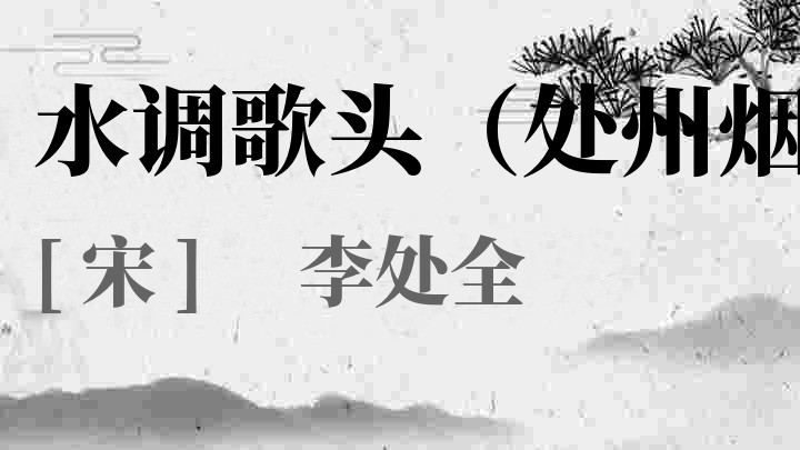 李处全(1134-1189)约宋孝宗淳熙初前后在世[即约公元一一七四年前后在世]字粹伯,里居及生卒年俱不详。徐州丰县(今属江苏)人。高宗绍兴三十年(1160)进士。曾任殿中侍御史及袁州、处州等地方官。有少数词作表现了抗敌爱国的热情和壮志难酬的悲愤。处全工词,有晦庵词一卷,《文献通考》传于世。