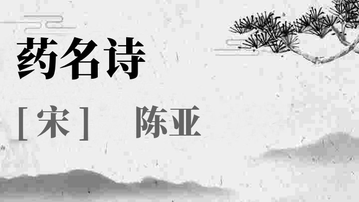 陈亚(约公元1017年前后在世)字亚之,维扬(今江苏扬州)人。生卒年均不详,约宋真宗天禧初前后在世。咸平五年(公元1002年)进士。尝为杭之于潜令,守越州、润州、湖州,仕至太常少卿。家有藏书数千卷,名画数十轴,为生平之所宝。晚年退居,有“华亭双鹤”怪石一株,尤奇峭,与异花数十本,列植于所居。亚好以药名为诗词,有药名诗百首,其中佳句如“风月前湖夜,轩窗半夏凉,”颇为人所称。药名词如生查子,称道之者亦多。少孤,长于舅家,受其舅影响,熟谙,药名,有药名诗百馀首。