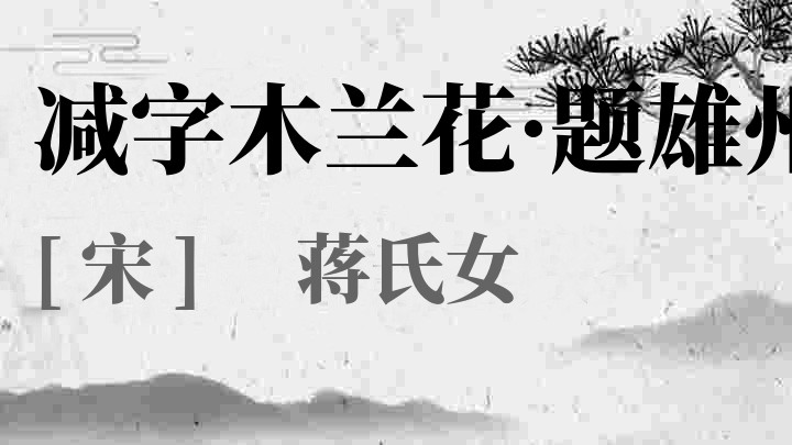 蒋氏女,生卒年不详,宜兴(今江苏县名)人,一作浙西人。父兴祖,为阳武(今河南原阳)县令,靖康初,金兵围城,抵抗而死,妻儿亦死难。韦居安谓:“其女为贼掳去,题字于雄州驿中,叙其本末,乃作《减字木兰花》词云......蒋令,浙西人,其女方笄,美颜色,能诗词,乡人皆能称之。”